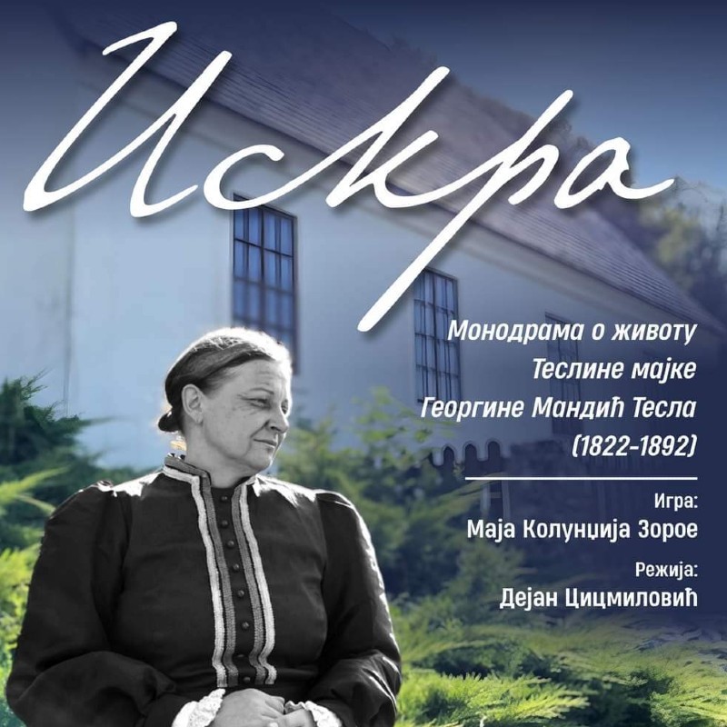 Монодрама Искра базирана на историјским чињеницама, писмима, свједочењима, документима, је прича о животу и дјелу Николе Тесле, из специфичне визуре његове мајке Ђуке.